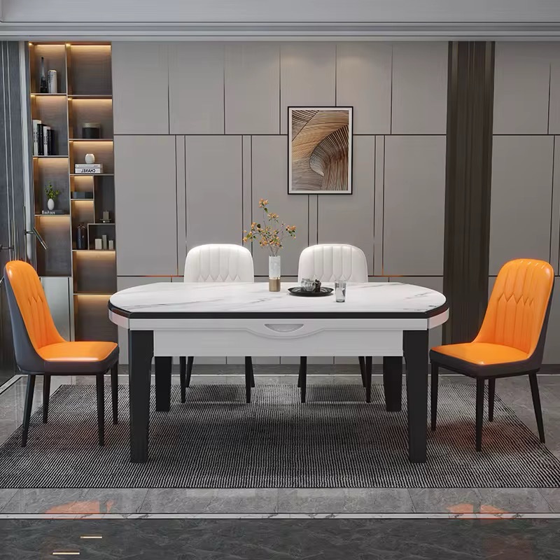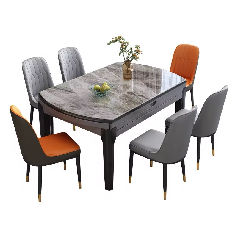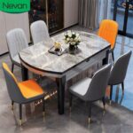 تصميم عصري بسيط يناسب جميع الديكورات، متوفر بألوان اختيارية، الطقم مكوّن من طاولة طعام + 6 كراسي