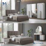 تتكون الغرفة من : سرير دولاب تسريحة 2 كومود تفاصيل اضافية : دولاب الملابس 6 ضلف السرير مناسب لمرتبة مقاس